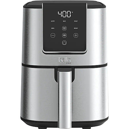 The bella PRO 4-qt. Touchscreen Space Saving Air Fryer will fit perfectly in your kitchen. Featuring 5 preset settings and an adjustable temperature up to 400°F, you can easily cook your favorites for friends and family (up to 3.3 lbs. of food). The 60-minute auto shut-off timer ensures precise cooking results every time. Made without PFAS, PFOA, PTFE, Lead, and Cadmium, the EverGood Ceramic Nonstick Coating gives you confidence & peace of mind when using this air fryer, while dishwasher-safe parts simplify the cleanup process and save you valuable time. Powered by high-performance circular heat technology, this air fryer evenly circulates heat for quick, crispy, and perfectly cooked food.