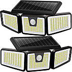 $19*:2-Pack 225-LED Solar Motion Sensor Outdoor Lights, 2500LM, 3-Head Adjustable Flood Lights, Waterproof