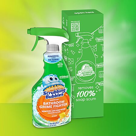 Amazon.com has Scrubbing Bubbles Bathroom and Shower Cleaner Disinfectant Spray, Bathroom Grime Fighter, Citrus Scent, 32oz on sale for $3.32.