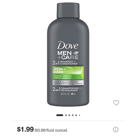 Dove Men+Care 2 in 1 Shampoo + Conditioner -Travel Size - 3 fl oz Free with coupon