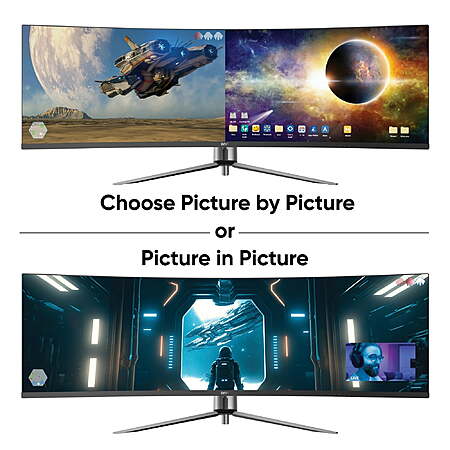 • Curved widescreen Dual FHD gaming monitor with bezel-less display, Picture-in-Picture (PIP) + Picture-by-Picture options and gaming modes