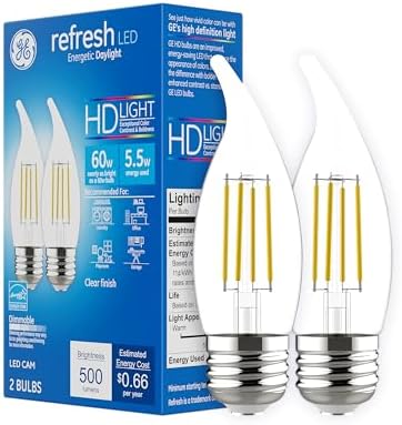 $6.59 | 2-Pack GE Refresh LED Light Bulbs, 60 Watt Eqv, Daylight, Decorative Clear Bulbs, Medium Base at Amazon