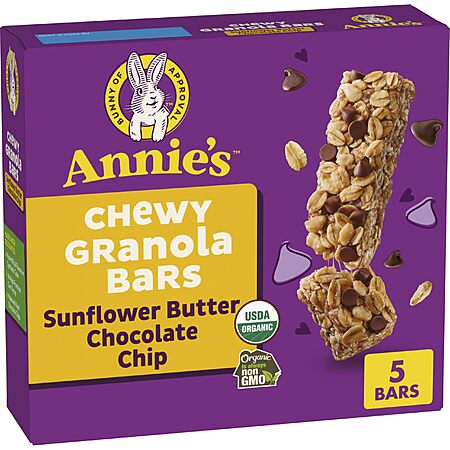 5-Count Annie's Chewy Organic Granola Bars (Sunflower Butter Chocolate Chip) $1.98 w/ S&S + Free Shipping w/ Prime or on $35+