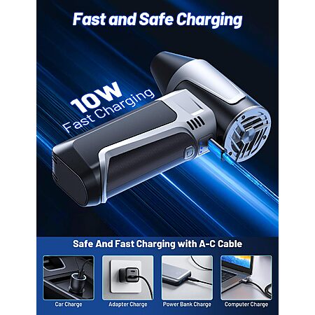 - ✅ Eco-Friendly & Rechargeable Design--Say goodbye to wasteful canned air! Our rechargeable electric air duster features a USB-C fast-charging port (up to 10W) and provides up to 90 minutes of runtime. It's a cost-effective, sustainable solution for all your cleaning needs, saving you money and reducing environmental impact.