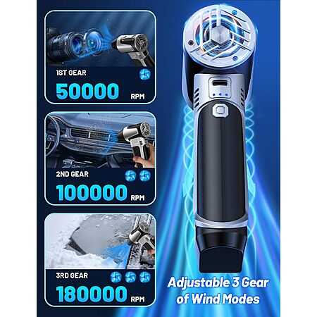 - ✅ 3 Adjustable Speed Settings--Tailor the airflow to your task with 3 speed modes. Use low or medium settings for delicate electronics and high speed for heavy-duty cleaning. The intuitive button design makes it easy to switch between modes for precise control.