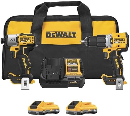 [AC] $296.10 | DEWALT 20V MAX XR Impact Driver and Hammer Drill Cordless Power Tool Combo Kit, Includes 2x 4ah POWERPACK Batteries and a Charger (DCK250QQ2) at Amazon