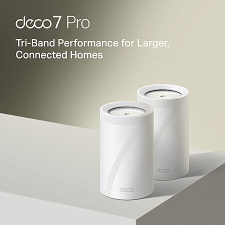 TP-Link Deco 7 Pro BE63 Tri-Band WiFi 7 BE10000 Whole Home Mesh System- 6-Stream 10 Gbps, 4x2.5G Ports Wired Backhaul, 4X Smart Internal Antennas, VPN, HomeShield $269.98