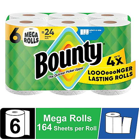 Model: Bounty Paper Towels Select-A-Size White, 6 Mega Rolls, 164 Sheets per Roll