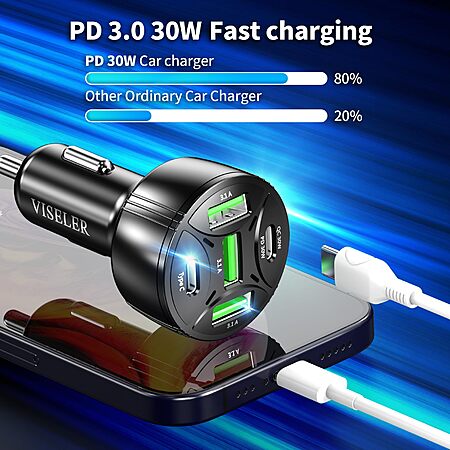 Model: USB C Car Charger Adapter, PD 3.0 Charger, 5 USB QC 3.0 Car Phone Chager Fast Charging for iPhone 17, Galaxy S24 and Other USB Device. (2Pack)