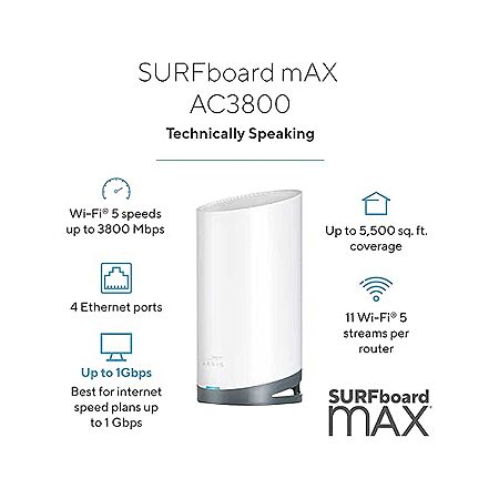 ARRIS SURFboard mAX WC4S Tri-Band Mesh WiFi System (AC3800, 5,500 sq ft Coverage) $19.99 + Free Shipping w/ Prime