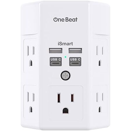 One Beat 5x AC 4x USB 3-Prong Outlet Extender w/ 1680J Surge