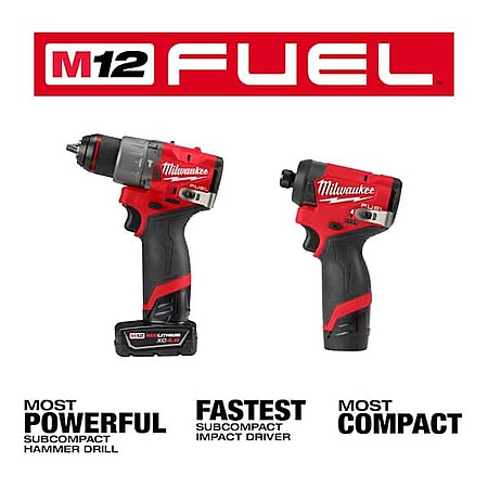 Milwaukee M12 FUEL 12V Brushless Hammer Drill/Impact Driver Combo Kit w/2.0Ah, 4.0Ah, and 5.0Ah Batteries $230