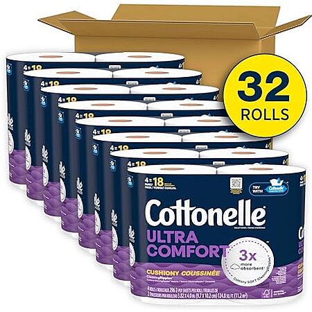 [SnS, AC] $22.61* | 32-Pack 296-Sheet Cottonelle 2-Ply Toilet Paper Family Mega Rolls at Amazon