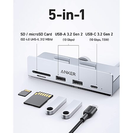 AnkerDirect via Amazon has Anker 535 USB-C Hub w/ 2x USB-A, 1x USB-C 10Gbps Data Ports & SD Reader for iMac for $21.99. Shipping is free with Prime or on $35+ orders.