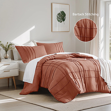 Regency Heights King Comforter Set, Boho 3-Piece Pintuck Stitching Bedding Set w/Pillow Shams, Lavender or Burnt Orange $27.86