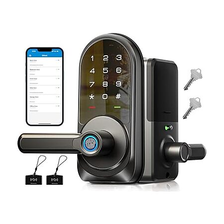 Veise RZ07 7-in-1 Keyless Entry Smart/ Fingerprint Door Lock w/ App Control $49.99 & More + Free Shipping w/ Prime