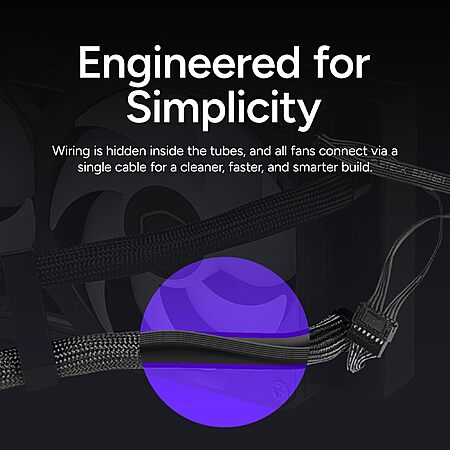 - Engineered for Simplicity: Cables are routed internally through the tubes, and all fans connect with a single cable for a cleaner, faster, and more streamlined build.