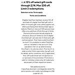 Get 15% off select gift cards through 2/14. Max $30 off.