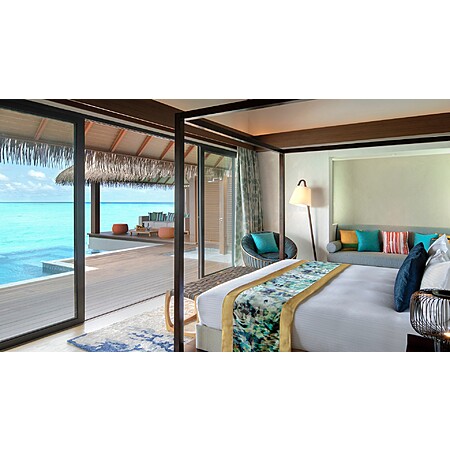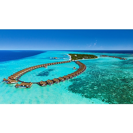 The resort is located approximately a 60-minute flight and 20-minute speedboat from Malé International Airport (MLE).