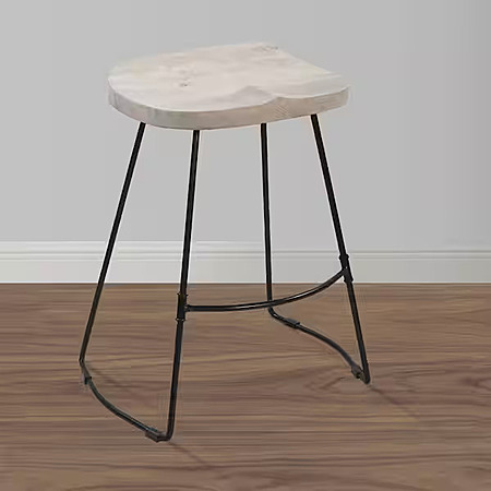 38" The Urban Port Manhattan Lane Tiva Handcrafted Backless Barstool (Mango Wood Saddle Seat, White, Black) 2 for $72.90 ($36.45 each) + Free Shipping