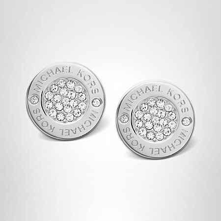 Michael Kors Silver-Tone Stud Earrings or Drop Earrings for Women; Stainless Steel Earrings; Jewelry for Women, Silver Pavé Plaque on sale for