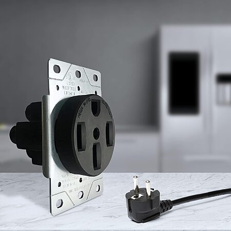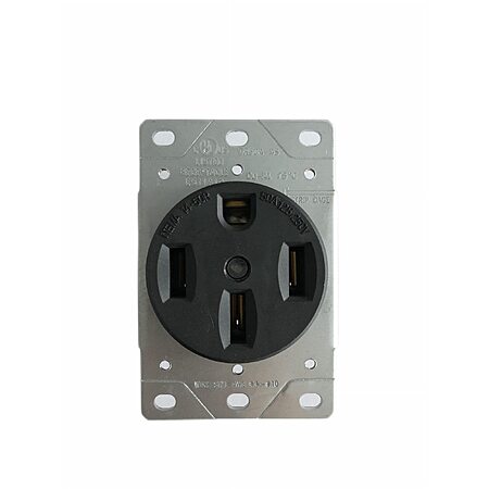 NEMA 14-50r flush mounting kitchen electric range dryer shop receptacle. 125/250V 50 Amp 3 pole 4 wire. Terminals accept 10, 8, 6, and 4 gauge Copper Wires (AWG), UL approved.