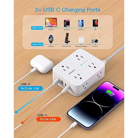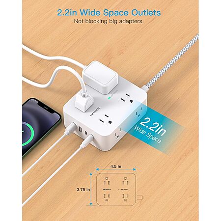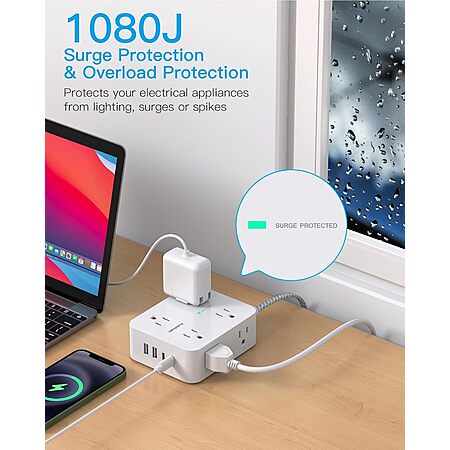 Hanycony 1080J Surge Protector 8-Outlet and 4 USB Ports Power Strip w/ 15' Braided Cord $9.99 + Free Shipping w/ Prime or on $35+