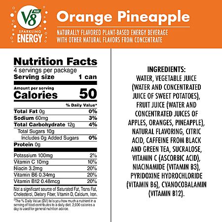 Model: V8 +Energy Sparkling Orange Pineapple Juice Energy Drink, 11.5 fl oz Can (4 Pack)