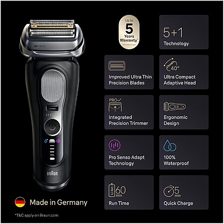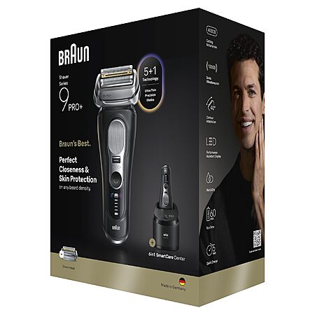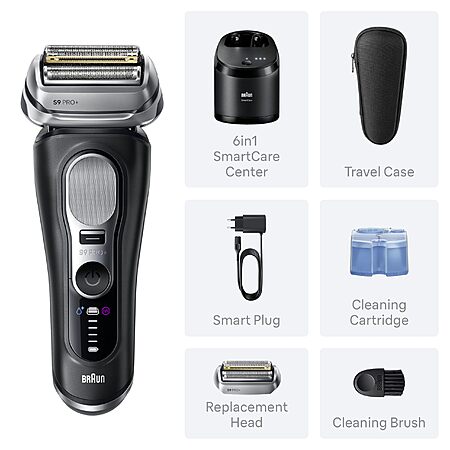Model: Braun Series 9 PRO+ Electric Shaver, Pro SensoAdapt, 6in1 SmartCare Center, 9660CCPS, Black