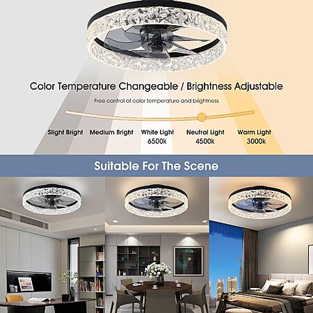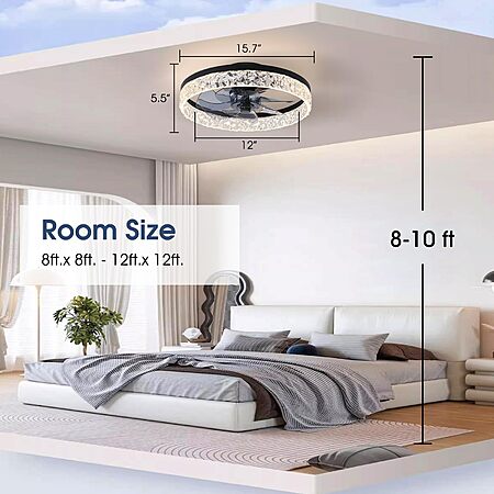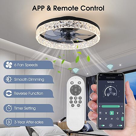 15.7" AHAWILL Crystal Flush Mount Ceiling Fan with Light & Remote (Black) $34.99 + Free Shipping w/ Prime or on $35+