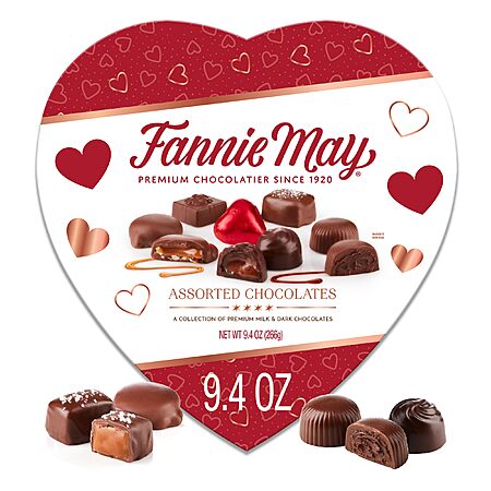 Fannie May Premium Assorted Milk and Dark Chocolate, Valentine's Day Heart Shaped Gift Box, 9.4 oz - $15.88