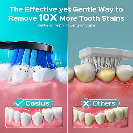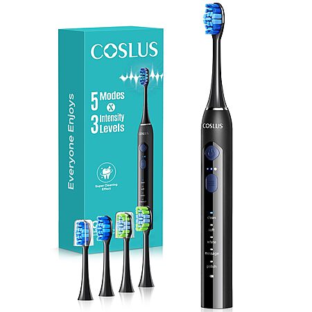 COSLUS Sonic Electric Toothbrush for Adults: 3 Intensities & 5 Modes, Black, 1PC - $3.99 AC