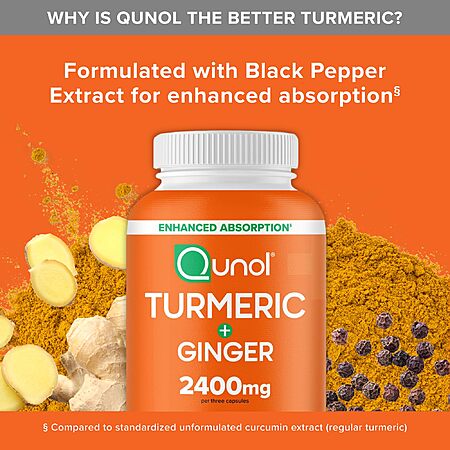 Qunol Turmeric Curcumin with Black Pepper & Ginger, 2400mg Turmeric Extract with 95% Curcuminoids, Extra Strength Supplement 105 Count $24.64