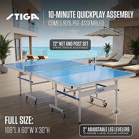 STIGA Outdoor Table Tennis Table, QuickPlay Assembly, 108" L x 60" W x 30" H $442.30