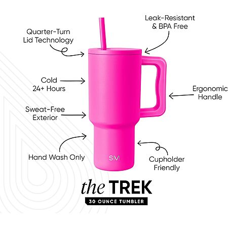 Simple Modern 30 oz Trek Tumbler with Handle and Straw Lid | Cup Holder Friendly Insulated Stainless Steel Travel Mug | Raspberry Vibes $9.8 at Amazon