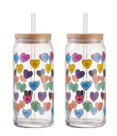 Mainstays Glass 20 oz Can Sipper Colorful Heart Conversation, 2 Pack - $6.05