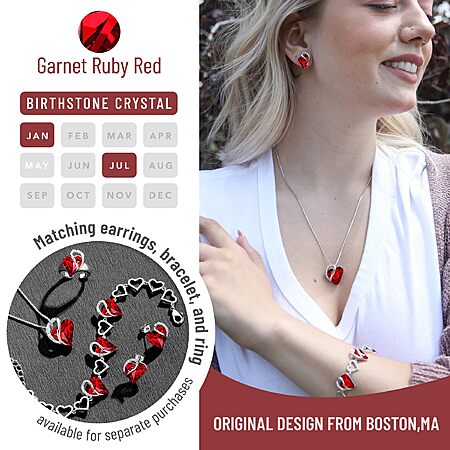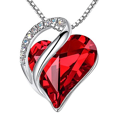 Leafael Valentine's Day Gift Necklaces for Women, Infinity Love Birthstone Heart Pendant, Ruby Garnet Red Crystal Jewelry for Her, Mom, Wife, Silver Plated, 18" + 2" Chain $29.98
