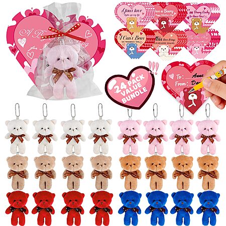24-Pack Valentine’s Day Mini Plush Bears w/ Heart Cards $14.99 + Free Shipping w/ Prime or on $35+