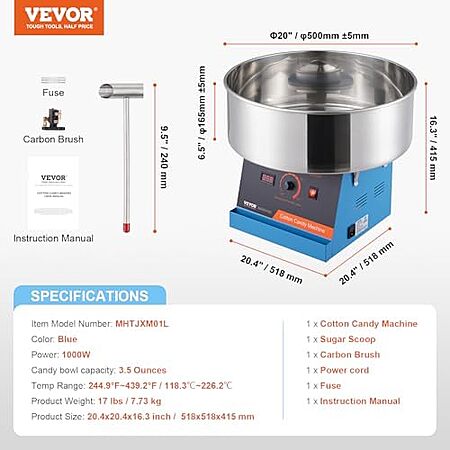 $89.90 | VEVOR Cotton Candy Machine Commercial, 1000W Electric Floss Maker with Stainless Steel Bowl at Amazon
