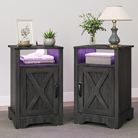 2-Pack RoyalCraft 25"H Nightstand Set w/ Charging Station (2 USB Ports, 2 AC) & LED Lighting (Dark Grey) $90.26 + Free Shipping
