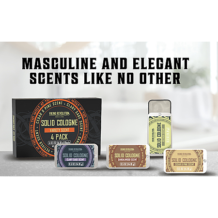 Model: Viking Revolution 4 Pack Mens Solid Colognes Men 0.5 Oz - Men Solid Perfume with Cedar Wood, Clary Sage, Vetiver, Sandalwood Cologne for Men - Balm Cologne for Mens Cologne Balm Travel Cologne Wax