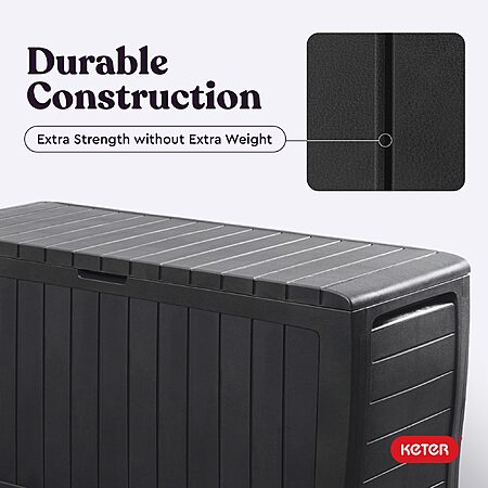 Amazon.com has Keter Marvel Plus 71 Gallon Resin Deck Box-Organization and Storage for Patio Furniture Outdoor Cushions, Throw Pillows, Garden Tools and Pool Toys, Dark Grey on sale for $48.43. Shipping is Free.
