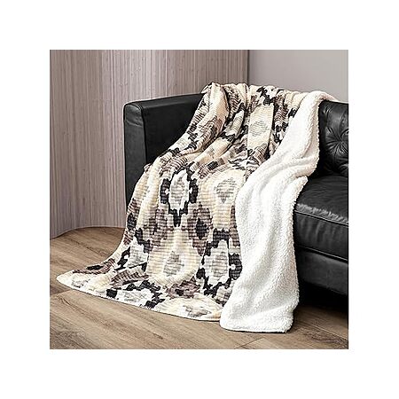Woot! has Northwest Ashford Home Cozy Silk Touch Ribbed Throw Blanket with Sherpa, Nadira Ikat 50 x 60 inches on sale for $9.99.
