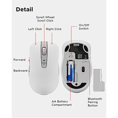 Amazon.com has Lenovo WL300 Bluetooth Silent Mouse, 5-Button Design, Silent Clicks, Sculpted Grip, Up to 1600 DPI, White/Grey on sale for $15.