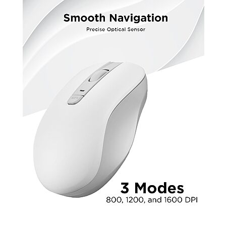 - Smooth Navigation: Maximize your workflow with a 5-button mouse featuring left click, right click, scroll click, forward, and backward buttons, coupled with an anti-slip scroll wheel. The precise optical sensor and 3-level DPI adjustment caters to various tasks, offering 800, 1200, and 1600 DPI