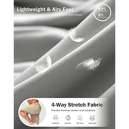 • Stay Cool, Move Freely: Lightweight, quick-dry shorts with 4-way stretch move with your body, never restricting your motion. Perfect for staying cool and comfortable all day long.