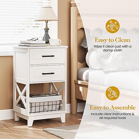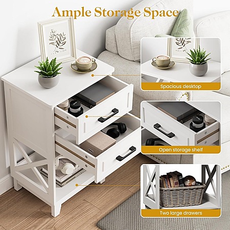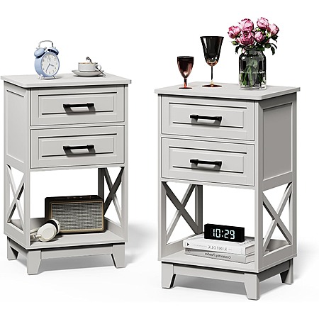 2-Piece RoyalCraft 30" Tall Nightstand Side Table w/ 2 Drawers & Open Shelf (White) $90.09 + FS