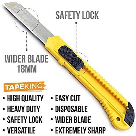 Model: Tape King Utility Knife Set (12 Pack) | 18mm Wide Blade Box Cutter | Retractable Design, Compact And Versatile for Home, Crafts, Warehouse, Cartons, Cardboard, Office Supplies and Packaging