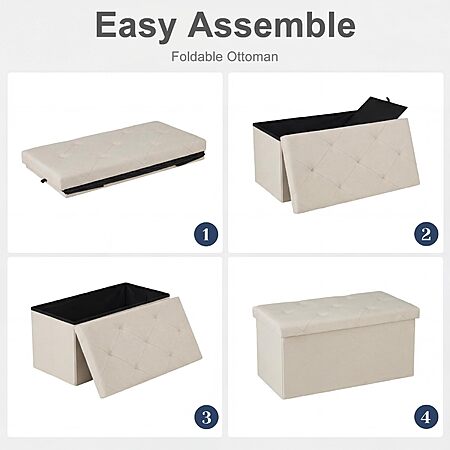 30" Dumos Foldable Storage Ottoman Bench Storage Chest (Beige) $27.99 + Free Shipping w/ Prime or on $35+
