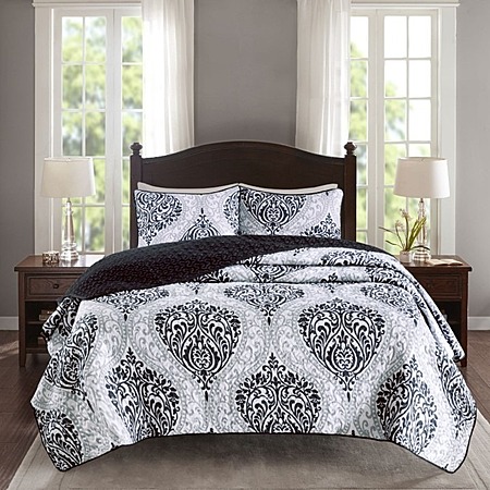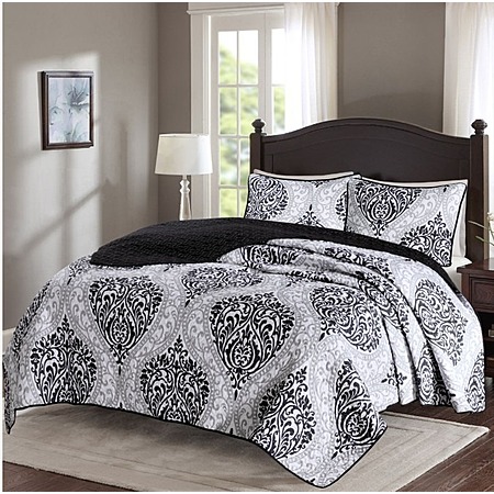 3-Piece Full/Queen Comfort Spaces Reversible Damask Pattern Quilt Set (Black/White) $17.75 + Free Shipping w/ Prime or $35+ Orders